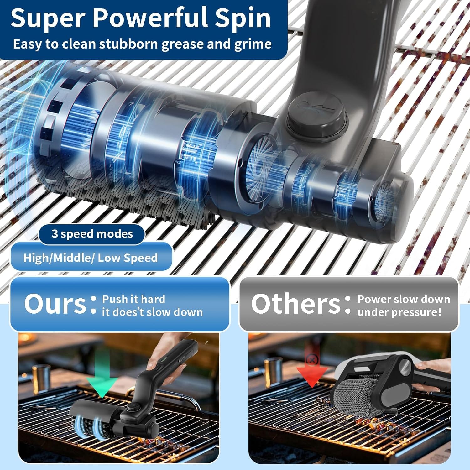 Electric Grill Brush, High Torque Grill Brush with 3-Speed Modes, 20kg Max Torque BBQ Cleaner Safe for Porcelain Cast Iron Stain